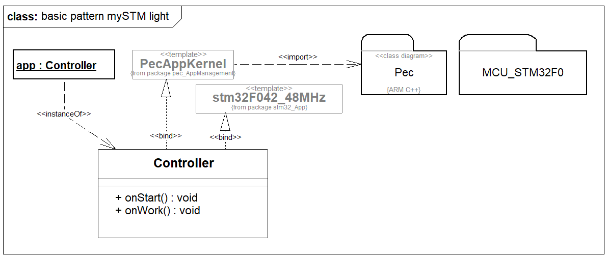 2. Diagrammvorlage für PEC Applikation auswählen, laden und Treiberpaket für STM32F0 einfügen